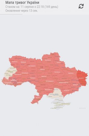 На Закарпатті за сьогодні вже втретє оголошено повітряну тривогу. Наразі тривога - майже у всіх областях України. На Заході, згідно карти тривог, її не оголошено у Львівській області. Проходьте в укриття, не ігноруйте попередження!