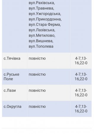 Відключення електроенергії 18 листопада 2022 року у Тячівській громаді