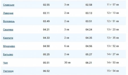 Прибуття до Ужгорода – о 6:52 наступного дня.
