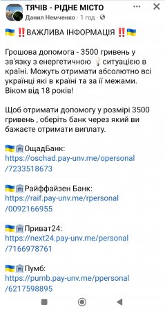 Грошова допомога - 3500 гривень всім у зв'язку з енергетичною ситуацією - ФЕЙК?