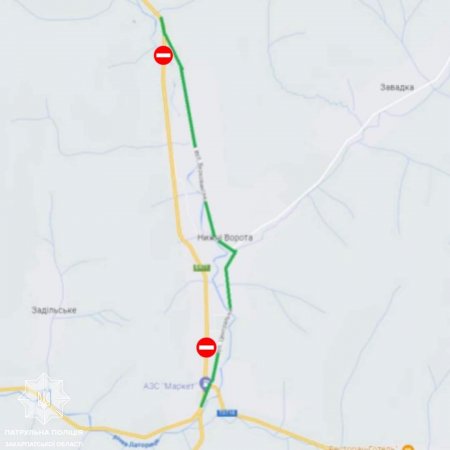 Патрульні забезпечують безпеку та регулювання дорожнього руху. Об‘їзд організовано через село Нижні Ворота.