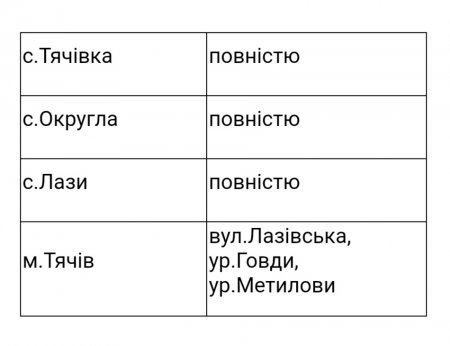 В зв'язку із проведенням будівельно-монтажних робіт для їх безпечного виконання 07.03.2023 року з 8 год до 17 год буде відключено електропостачання в наступних населених пунктах: