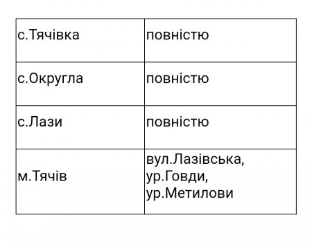 В зв'язку із проведенням будівельно-монтажних робіт для їх безпечного виконання 09.03.2023 року з 8 год до 17 год буде відключено електропостачання в наступних населених пунктах: