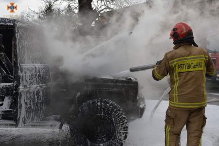 Ужгородські рятувальники ліквідували пожежу в автомобілі Mercedes G500.