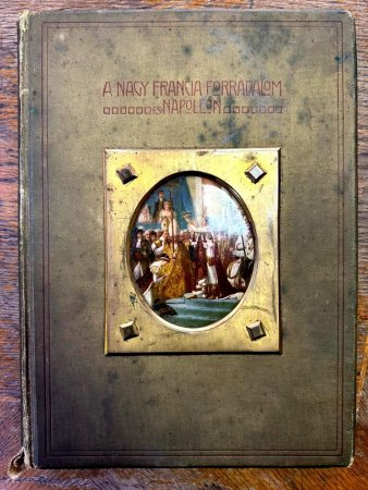 Книга з написом «FRANCIA FORRADALOM ES NAPOLEON», том V, видана в Будапешті, є історичною монографією, яка представляє Французську революцію та Наполеонівську війну (на угорській мові), з багатьма світлинами та малюнками, що можливо мають ознаки культурної, історичної та антикварної цінності.