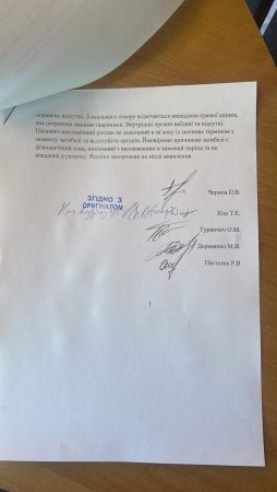 Також група могла пересвідчитись про наявність акту комісії, яка підтвердила (фото додаються), що смерть тварини – самця ведмедя (не ведмедиці), настала внаслідок природних причин, а на тілі тварини не виявлено слідів вогнепальних поранень. Акт підписаний представниками Ужгородського управління Держпродспоживслужби в Закарпатській області, Кам’яницького лісництва, головою та єгерем Закарпатського товариства мисливців і рибалок «Лісівник», а також мисливствознавцем Ужгородського лісового господарства.