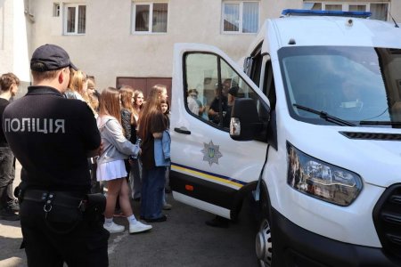 Школярам показали автомобіль, яким транспортують затриманих. Після чого провели екскурсію місцевим управлінням поліції до самого входу до ізолятора тимчасового тримання.
