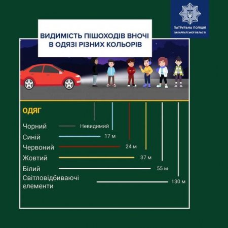 Патрульна поліція Закарпаття нагадує, що світловідбивачі роблять пішохода помітним у темну пору доби.