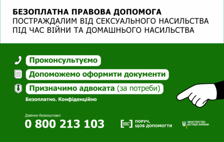 Служба у справах дітей Рахівської міської ради інформує про запуск інформаційної кампанії системи надання безоплатної правової допомоги для постраждалих від сексуального насильства під час війни та домашнього насильства.