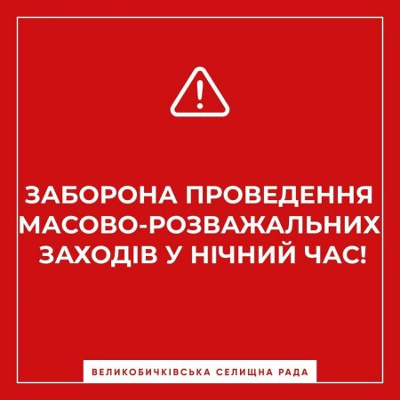 Виконавчим комітетом було прийнято рішення під номером 62 "Про заборону проведення масово-розважальних заходів у закладах ресторанного господарства та сфери послуг у нічний час на території Великобичківської ТГ (з 22:00 до 08:00)".