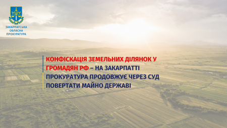 На Закарпатті органи прокуратури, застосовуючи представницькі повноваження, продовжують працювати над конфіскацією земельних ділянок у громадян рф та поверненням майна у власність держави. Цього року заявлено 5 таких позовів, які стосуються конфіскації 9 земельних ділянок загальною площею майже 18 га.