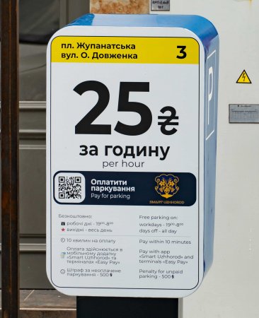 ▶️ Сплатити за паркування авто на місцях для платного паркування в Ужгороді можна через спеціальний додаток «Smart Uzhhorod», відсканувавши QR-код з інформаційної таблички або терміналу.