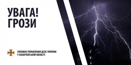В найближчу годину, та протягом дня на території Закарпатської області очікуються грози