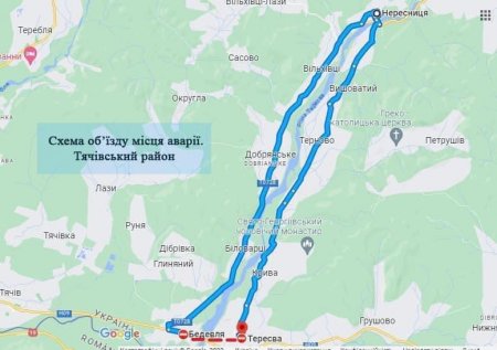 Важливо! Поліція оприлюднила карту обʼїзду на Тячівщині через пошкодження тимчасової переправи через річку (фото)