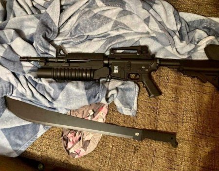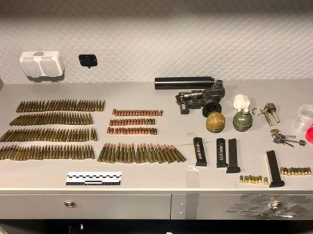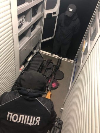Правоохоронці провели невідкладні обшуки за місцем проживання та в транспортних засобах зловмисника. У результаті, у одному з авто було виявлено цілий арсенал бойової зброї. А саме: автомат Калашникова з глушником, кулемет, понад 200 набоїв різного калібру, гранати, запали до них та магазини до пістолета; в іншому автомобілі — пістолет ПМ та штик-ніж; в будинку підозрюваного поліцейські виявили гвинтівку з підствольним гранатометом, клинок, мачете, приціл до ручного протитанкового гранатомета та глушник.