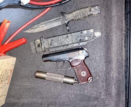 Усі речові докази слідчі вилучили. Оперативники наразі встановлюють походження цієї зброї.