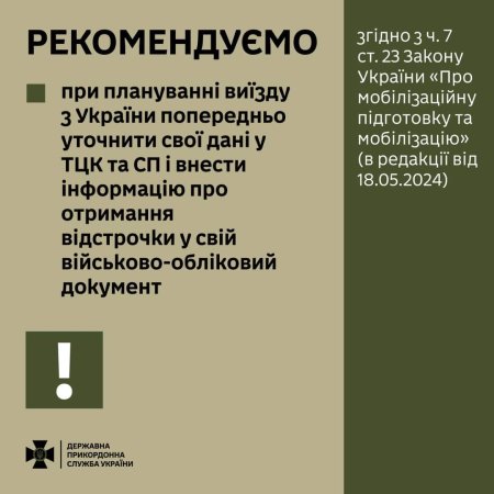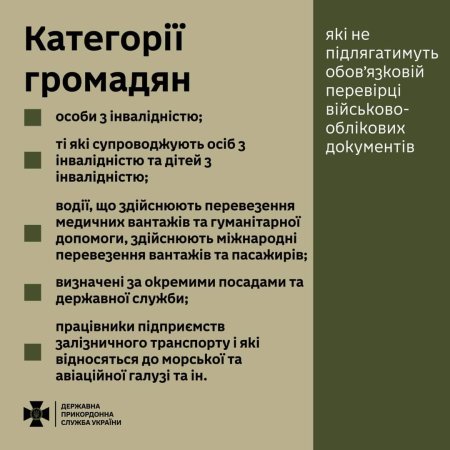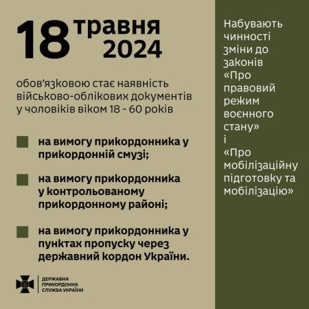 ❗️З 18 травня інспектори Держприкордонслужби в пунктах пропуску перевірятимуть наявність військово-облікового документу в окремих категорій громадян