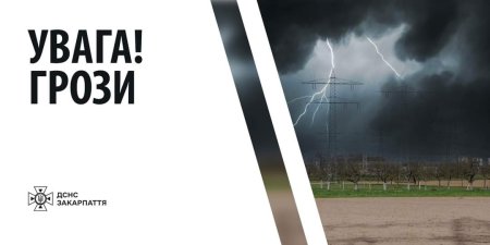 В найближчу годину протягом дня та ввечері 29 травня переважно в західній та центральній частині території Закарпатської області та по м. Ужгороду очікуються грози. Під час гроз пориви вітру до 15-20 м/с (І рівень небезпечності, жовтий).