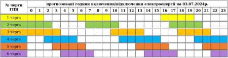 До уваги споживачів графік погодинних включень/відключень електроенергії на 03.07.2024