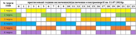 У четвер, 11 липня, з 16:00 до 23:00 обленерго будуть застосовувати чотири черги відключень одночасно.