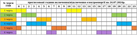 💡Графік погодинних відключень електроенергії на завтра, 24 липня