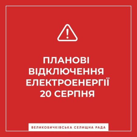 Для безпечного виконання робіт 20 серпня 2024 року з 07:00 до 18:00 будуть введені в ремонт одночасно лінії електропостачання 2 ПЛ-110 кВ "Хуст-220 - Тересва з відгалуженням Буштино - 110" та "Хуст - Тячів". У зв’язку з цим у селищі Великий Бичків, с. Верхнє Водяне, с. Водиця, с. Стримба, с. Плаюц, селищі Кобилецька Поляна, с. Косівська Поляна, с. Луг та с.Росішка тимчасово буде відсутнє електропостачання.