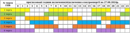 До уваги споживачів ОНОВЛЕНИЙ графік погодинних включень/відключень електроенергії на сьогодні, 27.08.2024