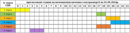 До уваги споживачів графік погодинних включень/відключень електроенергії на 01.09.2024