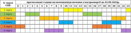 До уваги споживачів ОНОВЛЕНИЙ графік погодинних включень/відключень електроенергії на СЬОГОДНІ, 03.09.2024