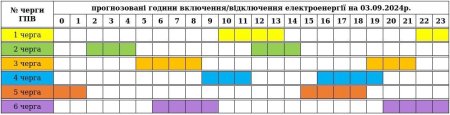 До уваги споживачів ОНОВЛЕНИЙ графік погодинних включень/відключень електроенергії на СЬОГОДНІ 03.09.2024