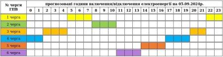 До уваги споживачів графік погодинних включень/відключень електроенергії на 05.09.2024