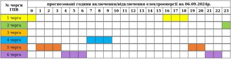 ОНОВЛЕНИЙ графік погодинних включень/відключень електроенергії на СЬОГОДНІ, 06.09.2024