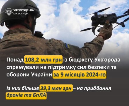 108 мільйонів 204,7 тисяч гривень із бюджету Ужгорода спрямували на підтримку сил безпеки та оборони України за 9 місяців поточного року. Із них 39 мільйонів 321, 5 тис. грн профінансовано на придбання дронів та БпЛА. Про це інформує відділ оборонної та мобілізаційної роботи Ужгородської міської ради.