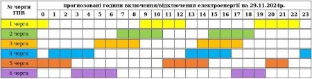 До уваги споживачів ОНОВЛЕНИЙ графік погодинних включень/відключень електроенергії на п'ятницю, 29.11.2024
