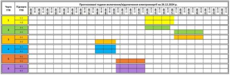 До уваги споживачів графік погодинних включень/відключень електроенергії на четвер, 26.12.2024