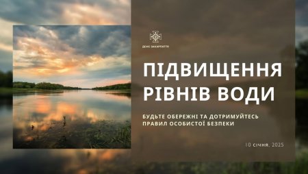 💧 в нижніх течіях Боржави на 1,5 - 2,5 м протягом 10-11.01, можливий початковий вихід води на заплаву (рівень небезпеки - жовтий);