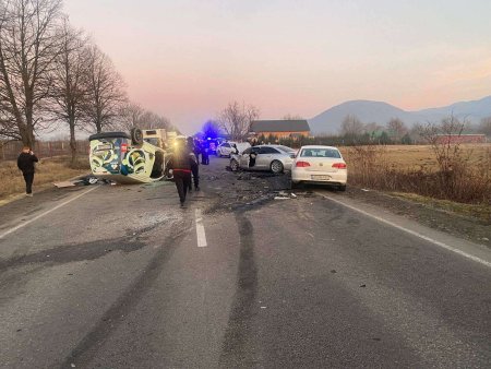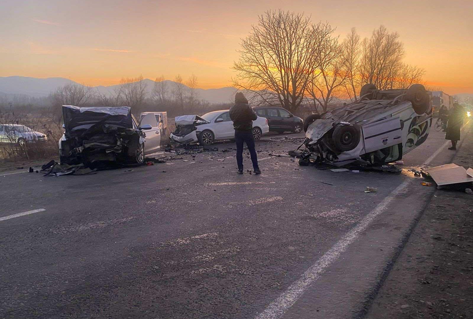 Близько години тому на в’їзді в місто Тячів з боку Буштина сталася масштабна дорожньо-транспортна пригода. За попередніми даними, унаслідок зіткнення чотирьох іномарок загинуло двоє людей. Один із автомобілів перекинувся на дах, три інші отримали серйозні пошкодження.