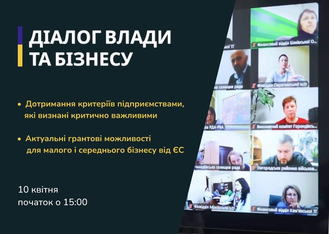 10 квітня о 15:00 відбудеться онлайн-зустріч у межах «Діалогу влади та бізнесу».