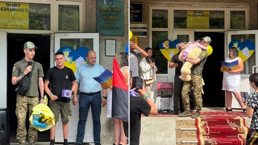 “Їх зустрічали з квітами, сльозами радості та щирими обіймами — всі зібрались, аби висловити свою вдячність за мужність, незламність та любов до України”, — повідомляють у Рахівській міській раді.