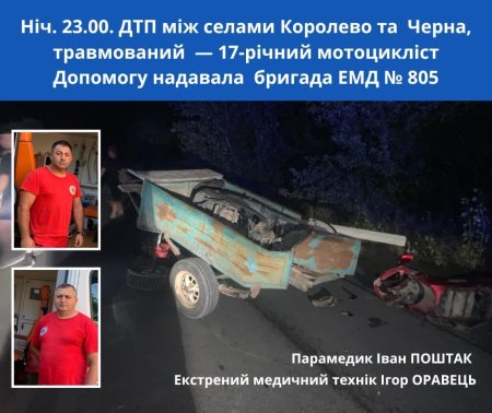 Літо — це швидкість, драйв і свобода. Але іноді одна помилка перетворює все на жахливу трагедію. Учора, близько 23:00, між селами Королево та Черна трапилася серйозна дорожньо-транспортна пригода: мотоцикл зіткнувся з причепом легкового авто. За кермом був 17-річний юнак із села Черна. Він їхав без шолома.
