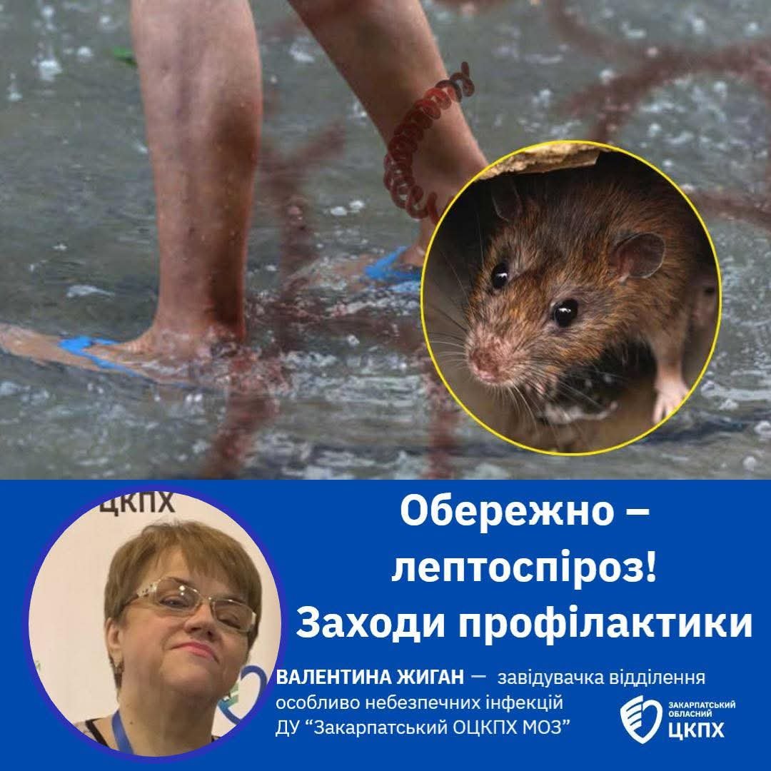 З настанням теплої пори року на Закарпатті зростає небезпека зараження лептоспірозом – гострою інфекційною хворобою, яка може призвести до серйозних ускладнень і навіть смерті. Збудники лептоспірозу поширюються гризунами та іншими дикими тваринами, а до людини потрапляють через пошкоджену шкіру або слизові оболонки при контакті з інфікованою водою чи ґрунтом.