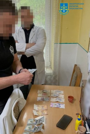 За даними слідства, завідувач відділення місцевої лікарні вимагав 1000 доларів США від закарпатця за виготовлення медичної документації з метою оформлення відстрочки від мобілізації. Пацієнт проходив дообстеження за направленням територіального центру комплектування.