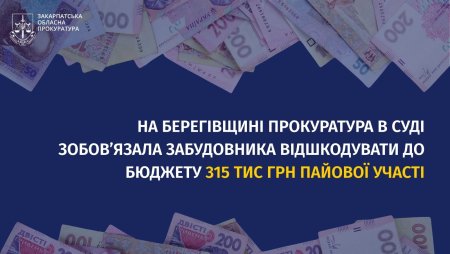 Берегівська окружна прокуратура відстояла у суді інтереси громади та домоглася стягнення з недобросовісних забудовників 315 тисяч гривень до місцевого бюджету.