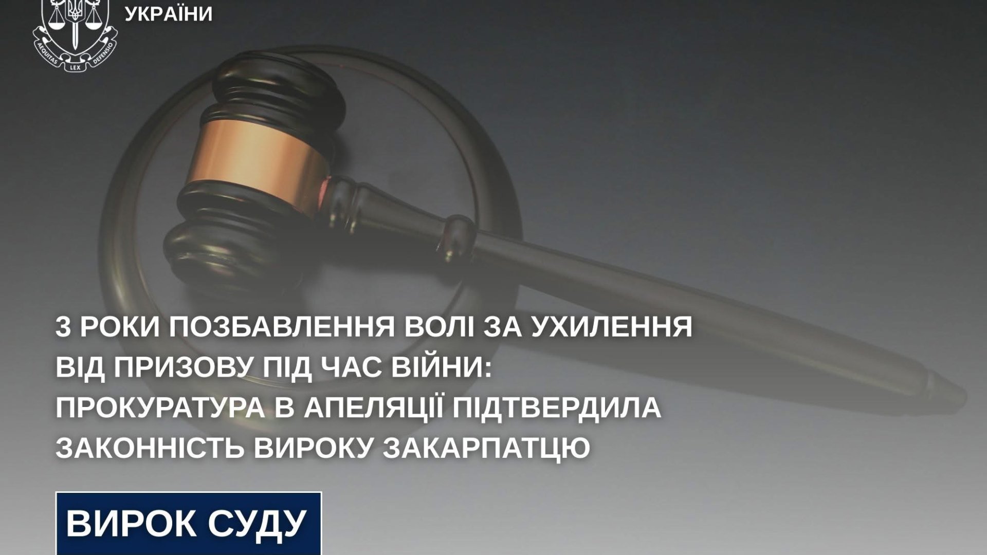 Закарпатська обласна прокуратура успішно відстояла законність вироку щодо мешканця села Бедевля, який ухилявся від призову на військову службу під час мобілізації.