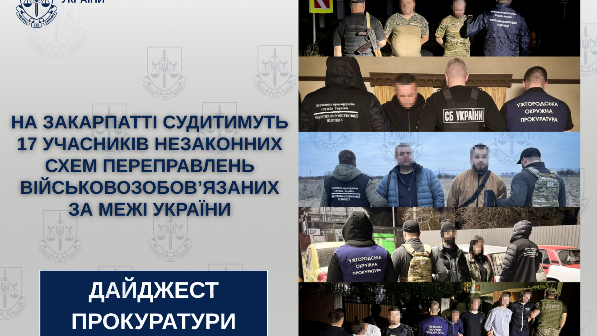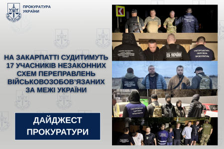Упродовж цього тижня прокурори Закарпаття скерували до суду обвинувальні акти стосовно 17 осіб, яких підозрюють в організації незаконного переправлення чоловіків призовного віку через державний кордон.