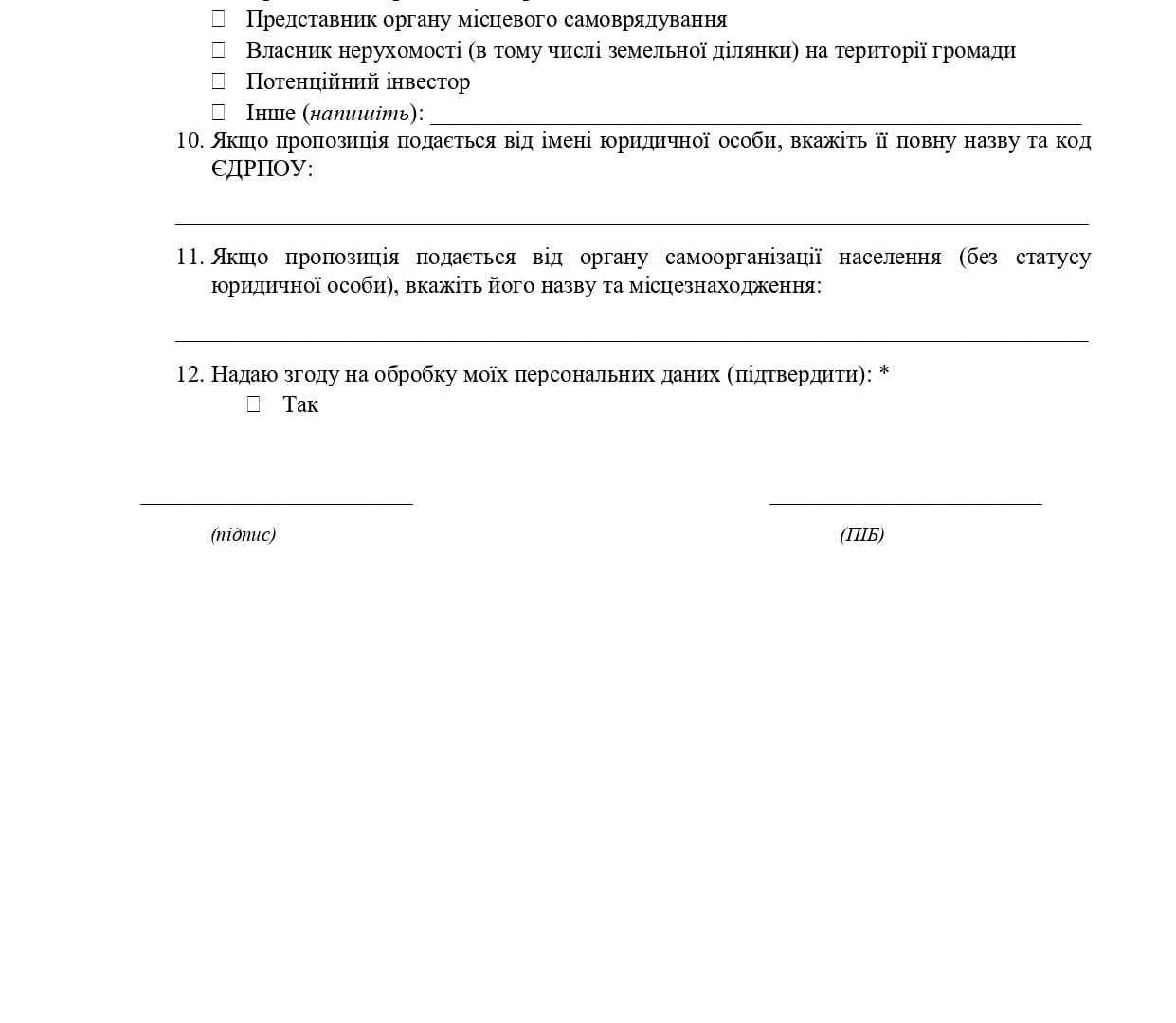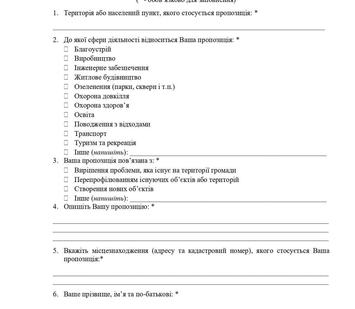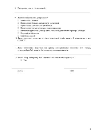 ‼️ Важливе попередження: Анонімні пропозиції не реєструються та не розглядаються. Вкажіть свої контактні дані!