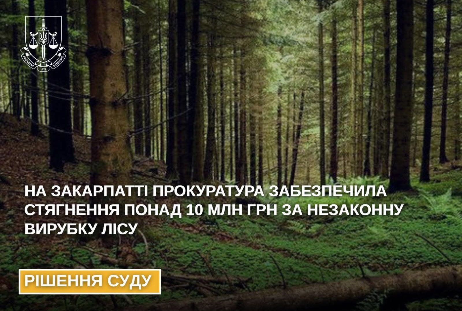 Прокуратура Закарпатської області забезпечила стягнення з державного підприємства «Ліси України» понад 10,3 млн грн збитків, завданих незаконною вирубкою дерев у межах природно-заповідного фонду.