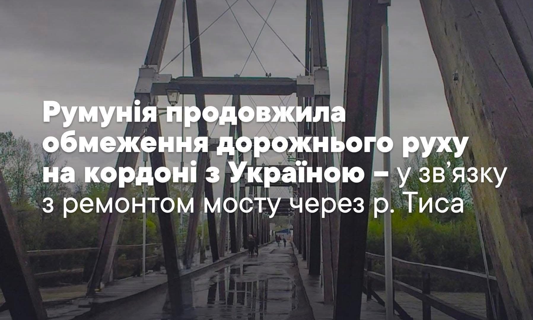Румунія продовжила обмеження руху на пункті пропуску «Солотвино – Сігету Мармацієй» через ремонт мосту на Тисі