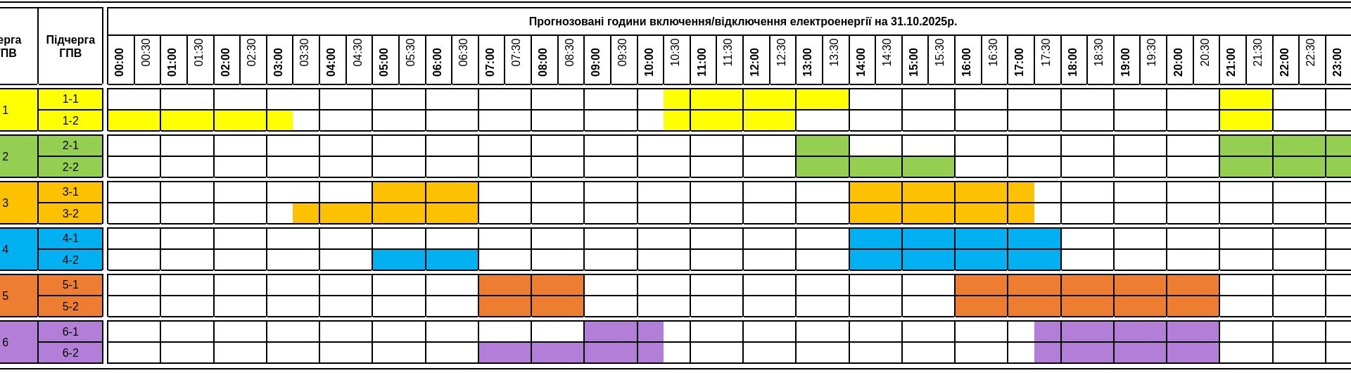 ПрАТ «Закарпаттяобленерго» доводить до відома споживачів інформацію про запровадження графіка погодинних включень/відключень електроенергії на 31 жовтня 2025 року.