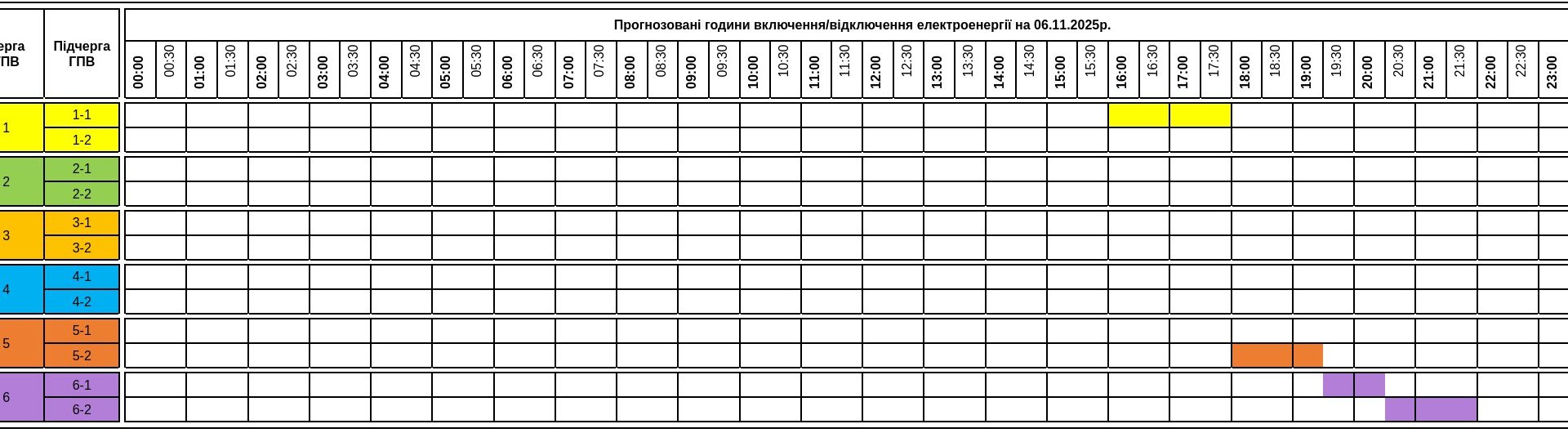 ПрАТ «Закарпаттяобленерго» інформує споживачів про необхідність застосування Графіків погодинних включень/відключень електроенергії (ГПВ) у четвер, 6 листопада 2025 року.
